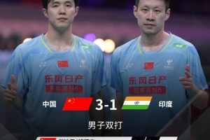 中国队3-1领先印度,已经锁定本场比赛胜利。凭借本场比赛胜利,国羽锁定小组第一。