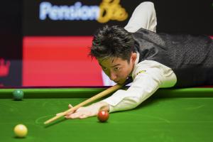 第二阶段首局瓦菲打出单杆106分获胜,随后吴宜泽打出单杆76、71和52分连胜三局,半场战罢,双方进入中场休息。