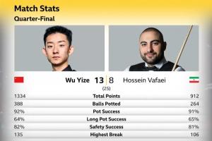 体育资讯04月30日讯 斯诺克世锦赛1/4决赛,吴宜泽13-8力克瓦菲晋级。数据方面,吴宜泽大部分都占据优势。详细如下,吴宜泽在前。